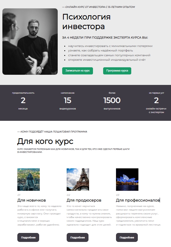 Лендинги собраны на платформе Геткурс, в разных онлайн-школах.