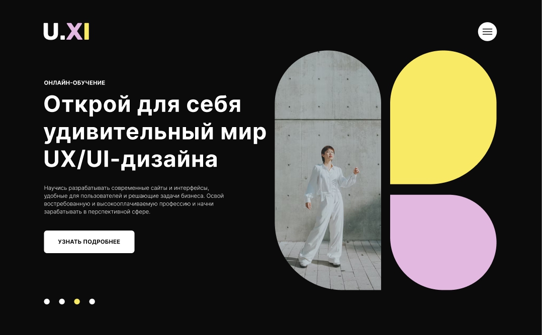 Главная страница тренингов, страницы тренингов, уроки, прогресс-бар прохождения уроков, боковая панель, виджет обратной связи, системные страницы выполнены в едином цветовом стиле.